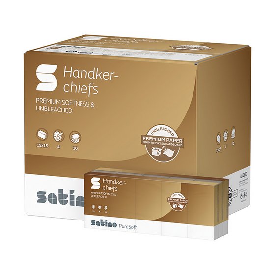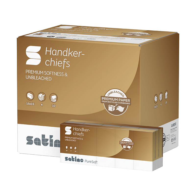 Satino PureSoft handkerchiefs are dermatologically tested, bear the Blue Angel and the EU Ecolabel, and are FSC® Recycled certified. You can find them under the new article number 118160.